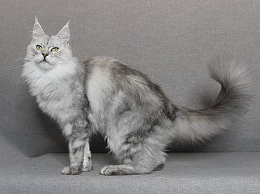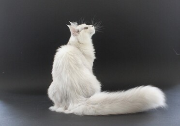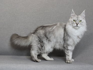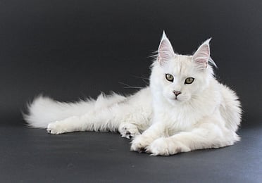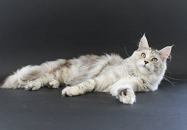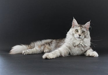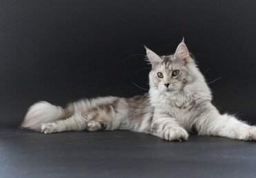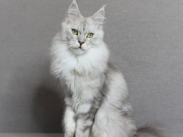 Our dazzling black silver shaded queen! With her rare and enchanting coat, she captivates everyone who lays eyes on her. Her fur, almost white with a touch of black, shimmers like a starlit sky.